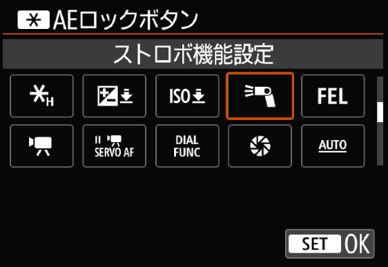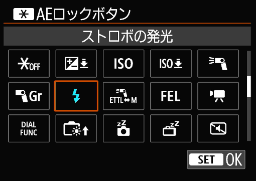 早速それをAEロックボタンに登録して使ってみると、何とストロボの発光するしないを簡単に切り替えられるのです。