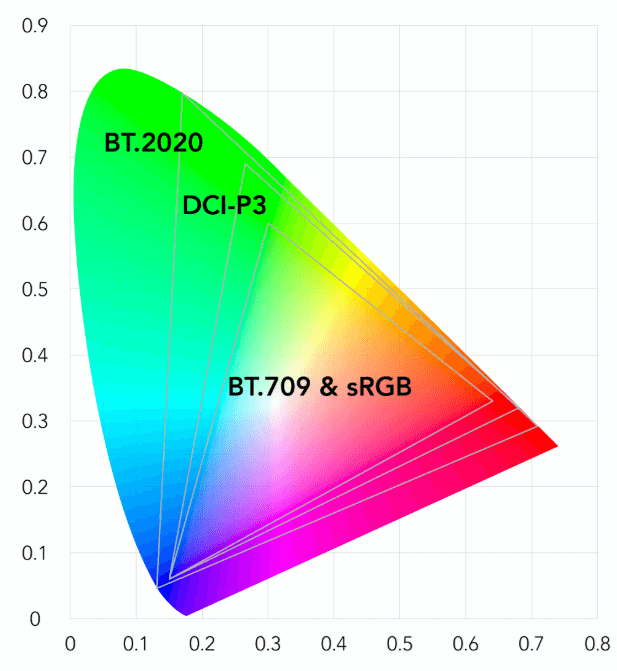 一般的な動画の色空間はBT.709でガンマ特性は2.2~2.4なのに対して、DCI規格においててはそれぞれDCI-P3とガンマ2.6なのです。