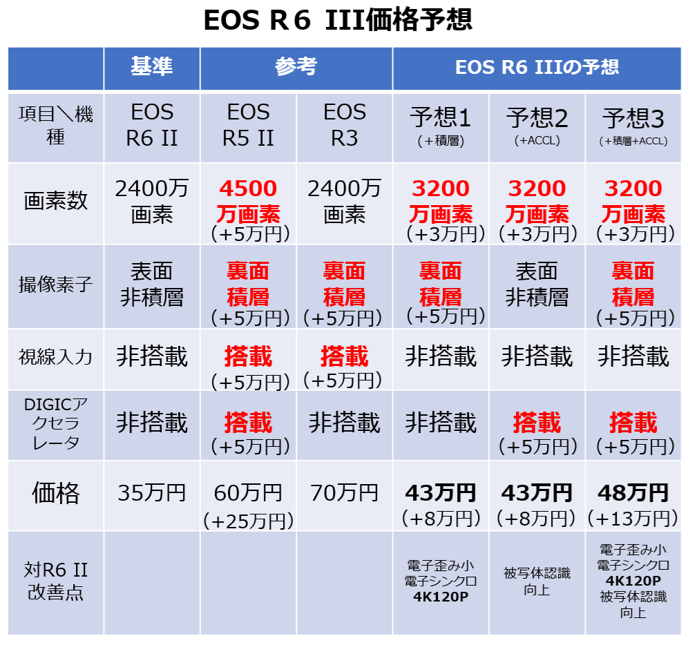 EOS R6 MarkIIIの価格予想をお知らせします。