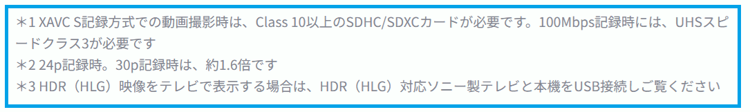 問題は、”*2 24P記録時。30P記録時は、約1.6倍です。”の記述です。